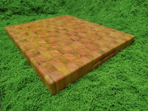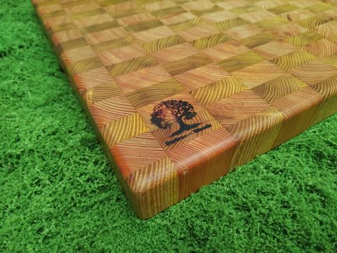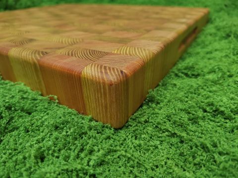 Handgefertigtes Stirnholz Schneidebrett gefertigt aus Robinie und Lärche.